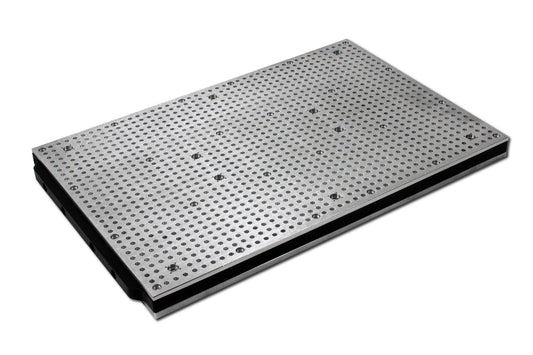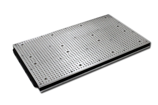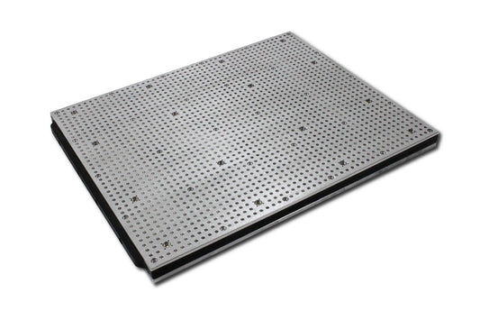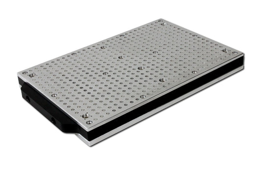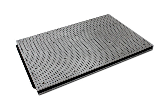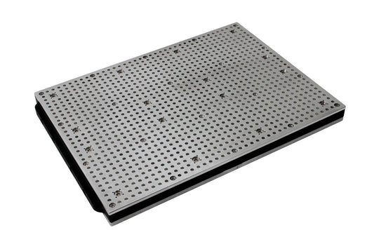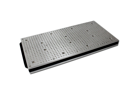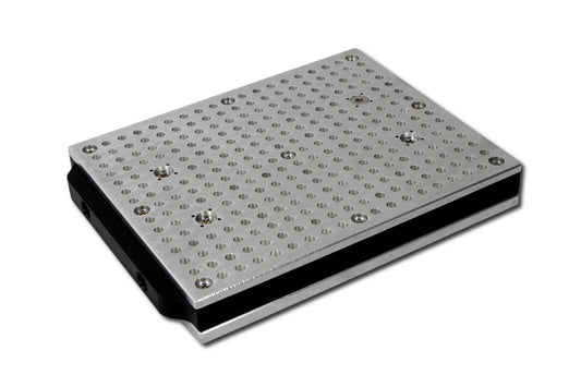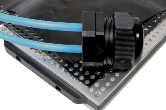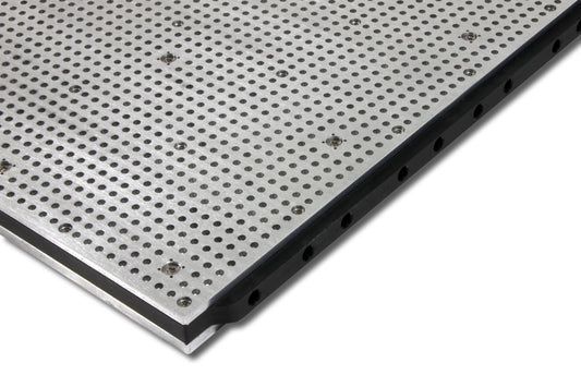 A 8 mm strong aluminium plate at the bottom of the vacuum table provides extra stability and allows you to fix the vacuum table on most T-Slot grids.